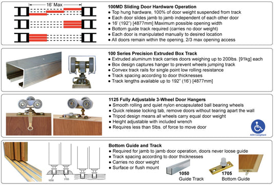 100MD Johnson Series (200 lb) 3-Track Multiple Sliding Door Hardware 100M1083