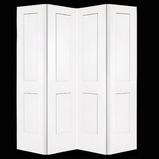 Bifold:Monroe Primed Moulded Smooth 2-Panel Shaker Style Panel Hollow Core Bifold Door w/Hardware