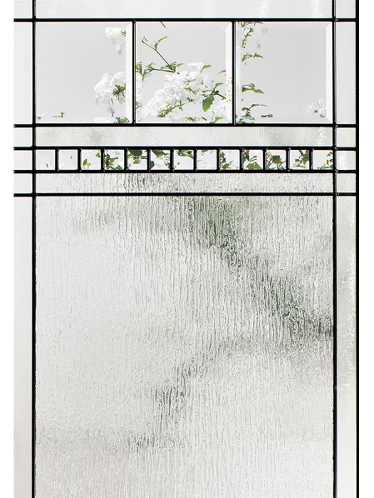 This model is available in custom sizes, adapted to your specific needs. Change the caming color to patina (black), flat patina, zinc (silver), or brass (gold color). Change one or more textured glass panes to the texture of your choice.