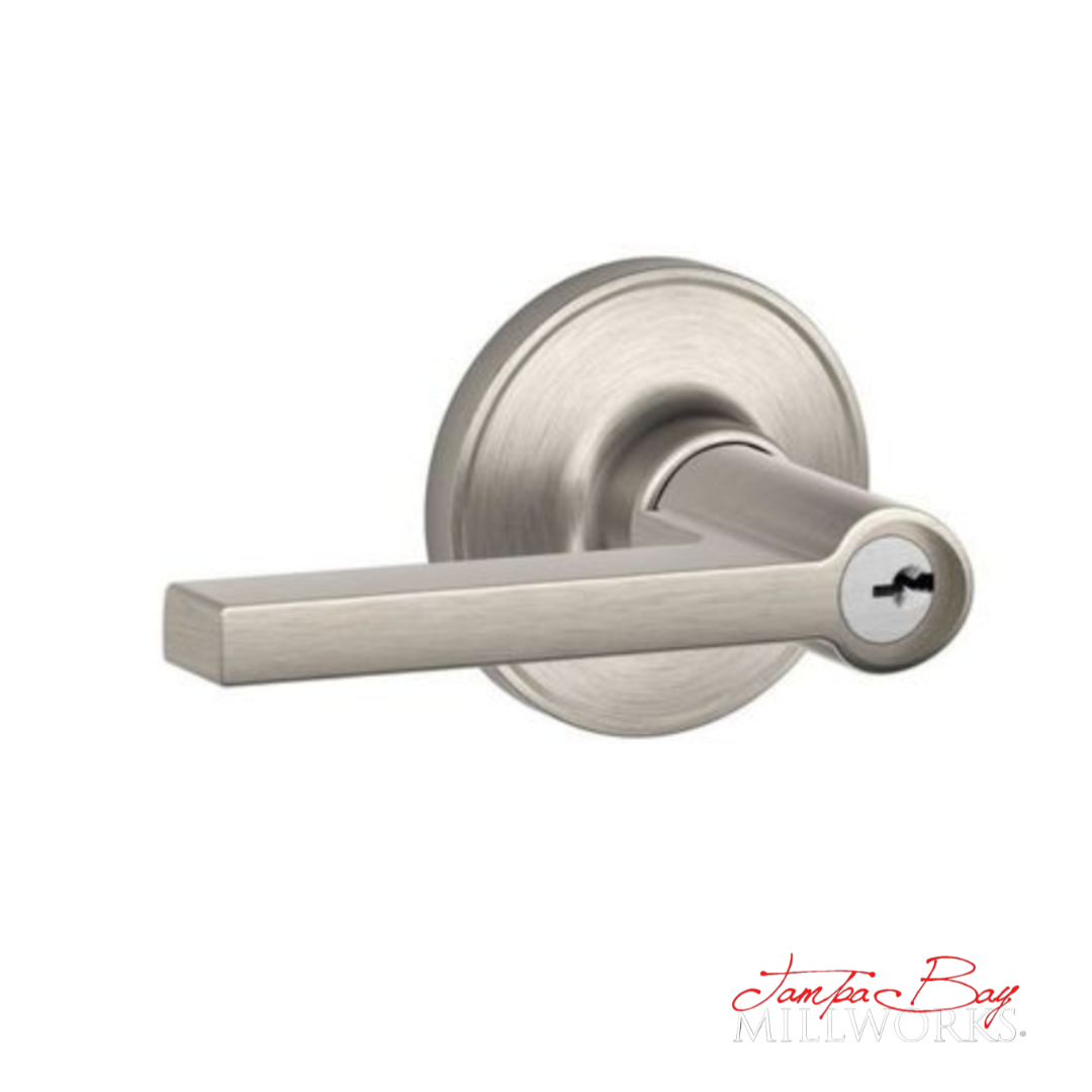 Invest in a handle set that offers both beauty and brawn. Experience the perfect balance of design and security with the SCHLAGE J54 SOL 619 Solstice Keyed Entrance Handle Set in satin nickel. Your doors deserve nothing less.