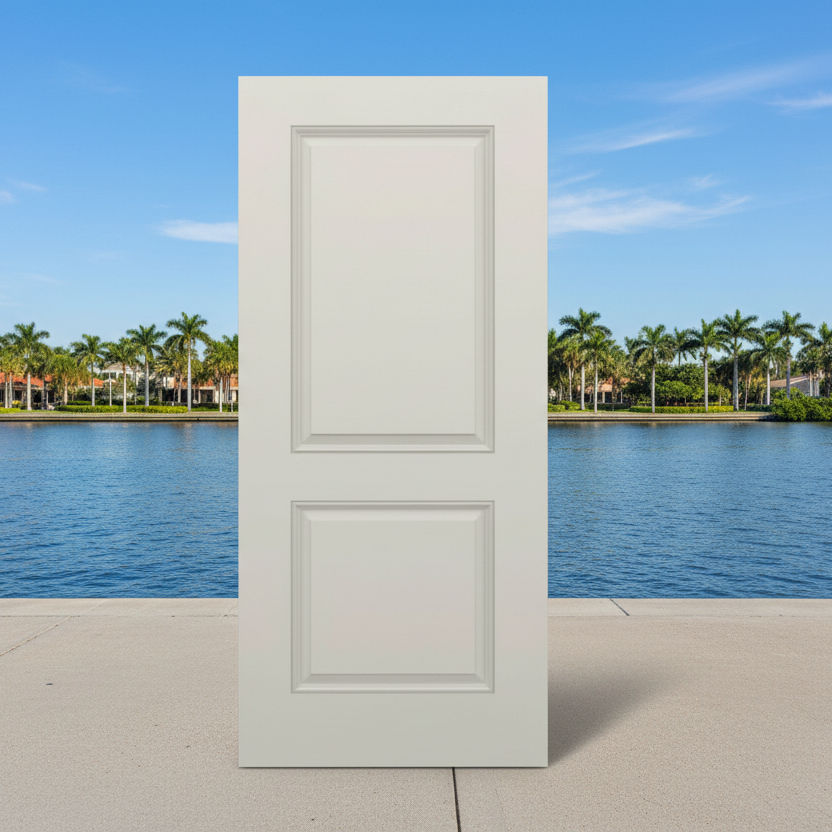 PlastPro: Fiberglass Smooth 2-Panel Squaretop Raised HVHZ-Impact DRS22I/DRS2280I Slab Only
