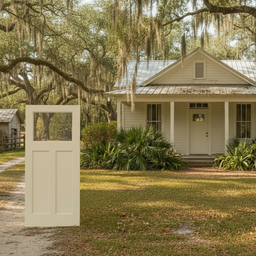 PlastPro: Fiberglass Smooth 3-Panel 1-Lite Clear Direct Glazed Shaker Panel DRS3C/DRS3C80 Slab Only