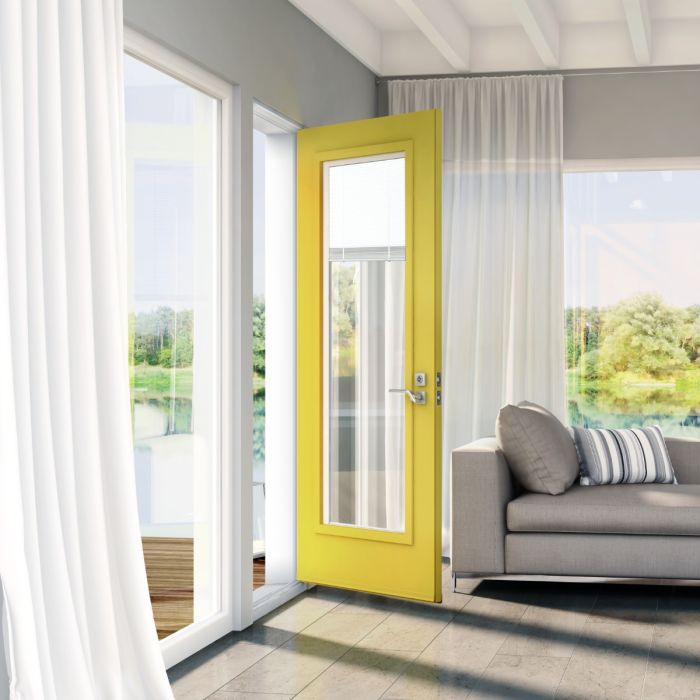 A perfect solution for letting in natural light during the day while maintaining complete privacy at any moment. Discretion aluminum blinds are seamlessly integrated into the window, offering durability and requiring no maintenance.