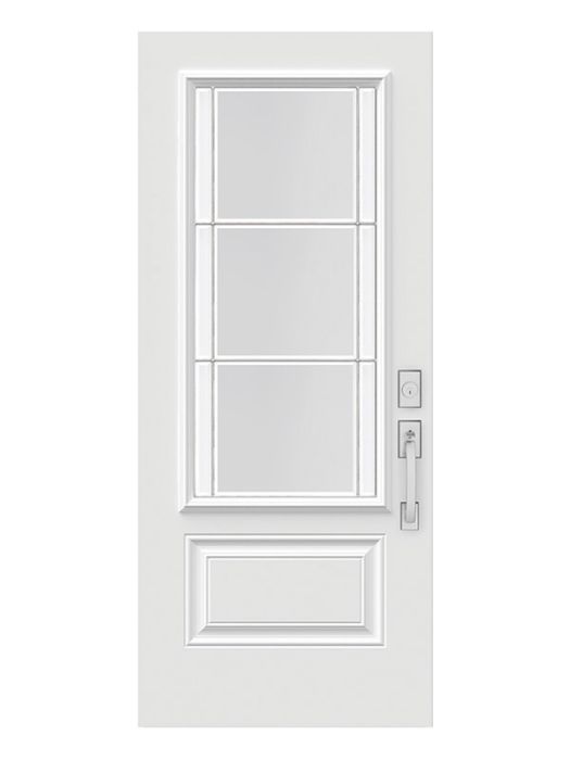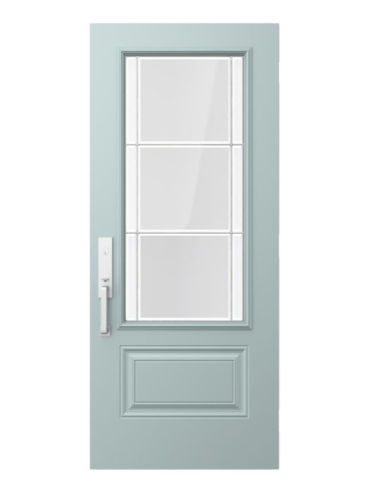 Opal showcases a refined blend of beveled glass, embodying timeless elegance. Combining clear and satin finish glass, it strikes the perfect balance between privacy and natural light. Its symmetrical shapes exude sophistication, making it a versatile choice for enhancing a wide range of architectural styles.