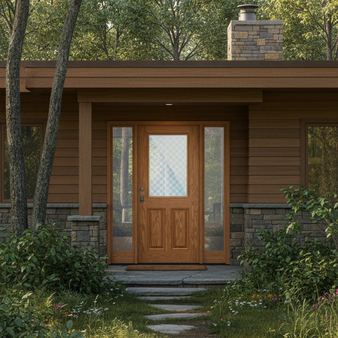 PlastPro Oak Series DRG60 (unfinished) Half-Lite w/22"x36" Clear Glass insert over 2 Panel Raised Panel - FL#17347