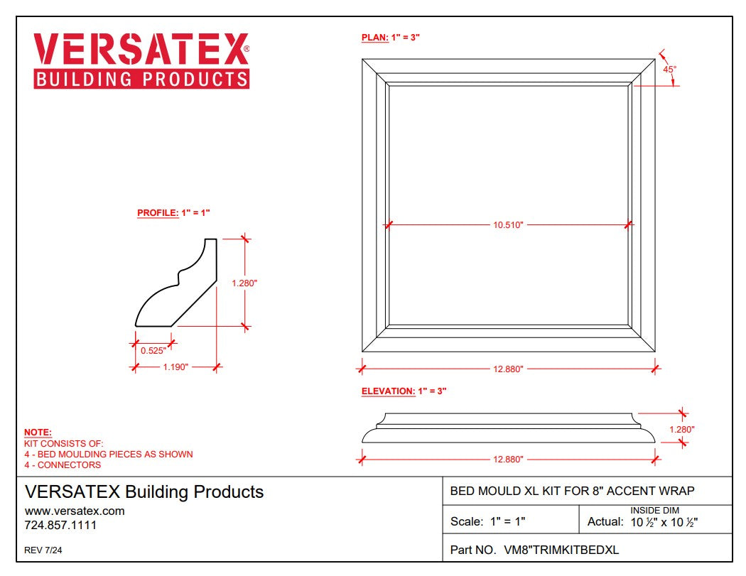 Versatex: 26215 8" Versa Wrap Trim Kit Bed Moulding